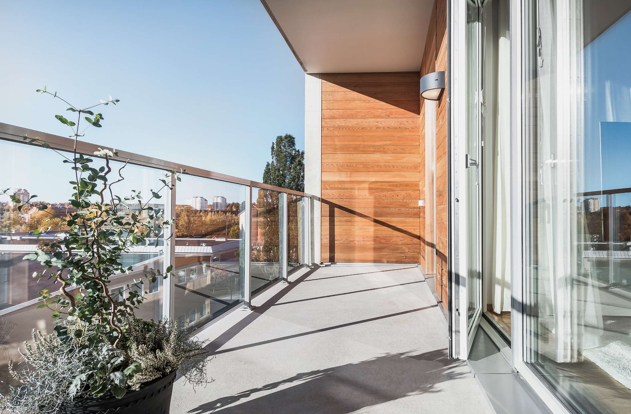 Den generösa balkongen integreras effektivt med övriga boytan genom smidiga och smarta skjutdörrar. Volym och yteffektiva planlösningar bidrar till ett boende präglat av frihet. Bo klokt och smart. Plats för tvättmaskin/torktumlare och diskmaskin i samtliga lägenheter.