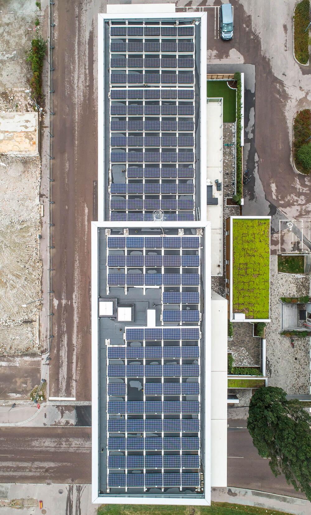 - Fastigheterna är anpassad för solenergi med målsättning om självförsörjning av fastighetens gemensamma elförbrukning.